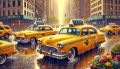 Vintage Yellow Taxis Brighten a Rainy Spring Day on Fifth Avenue