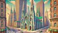 Whimsical DecoPunk Interpretation of St. Patrick's Cathedral, NYC