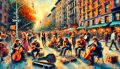Captivating Impressionist Depiction of Lively New York Street Performers