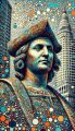 Colorful Pointillism Art of Christopher Columbus in New York City