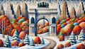 Winter's Touch Over Brooklyn's Grand Arch Amidst Autumn Tones