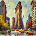 Vibrant Streets of New York: Flatiron Building in Expressionist Oils