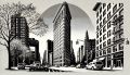 Dramatic Monochrome View of NYC's Flatiron Building Amidst Urban Scenery
