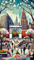 Cubist Vision of Winter at Rockefeller Center in Vibrant Hues