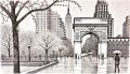Rainy Day at Washington Square Park with Iconic New York Landmarks