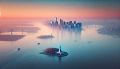 A Cubist Perspective on New York Harbor's Iconic Skyline