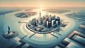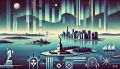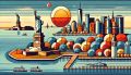 Cubist-Inspired Vision of New York Harbor at Sunset