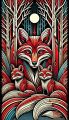 Majestic Red Fox Family Nestled in Stylized Forest Artwork