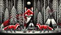 Enigmatic Red Fox Family Amidst Stylized Forest Artwork