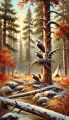 Ospreys Amidst Snow-Dusted Forest and Autumn Tints