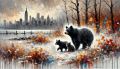 American Black Bears Amid New York's Autumn-Winter Landscape