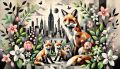 Springtime in New York: A Cubist Fox Family against the City Skyline
