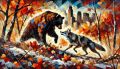 Urban Wilderness: A Vivid Clash of Bear and Coyote in Autumnal New York