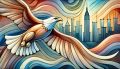 Majestic Eagle Soars Above New York Skyline in Cubist-Inspired Artwork