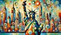 Vivid and Expressive Cubist Interpretation of Lady Liberty in NYC