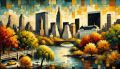 Autumn Embrace: Mosaic Vibrancy Over New York's Skyline