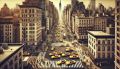 Whirling Yellow Taxis on New York's Fifth Avenue: An Artistic Impression