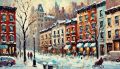 Vibrant Snowfall in Greenwich Village: An Abstract Winter Perspective