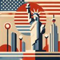 Vibrant Geometric Rendition of Liberty and New York Cityscape