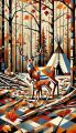 Autumn Whisper: A Cubist Deer Family Amidst New York's Forest Transition