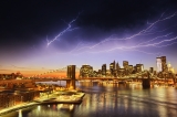 Illuminated Brooklyn Bridge and Manhattan Skyline at Night